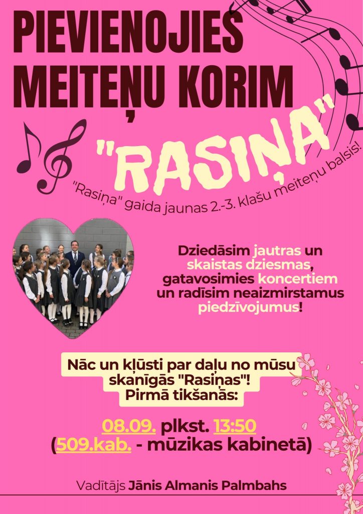 Satraukuma pilna nedēļā mūsu koriem! Zēnu koris “Rīts”, meiteņu koris “Rasa” un jauktais koris”Junda” piedalīsies koru konkursā, gatavojoties XIII Latvijas skolu jaunatnes dziesmu un deju svētkiem. Turam īkšķus par labiem rezultātiem!